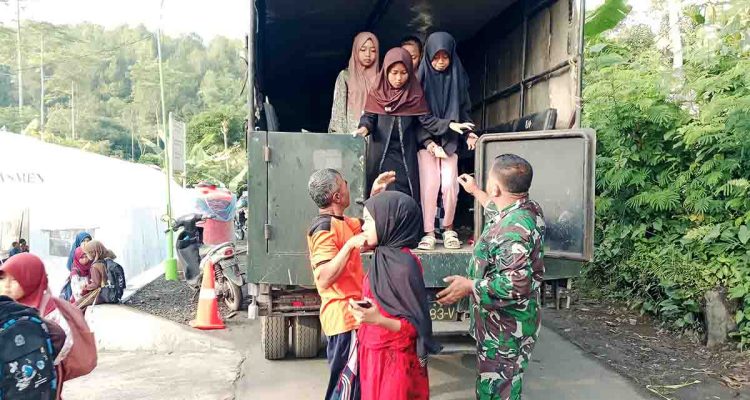 Anggota Kodim 0821 Antar Anak-Anak dari Pengungsian ke Sekolah Pascabencana Semeru