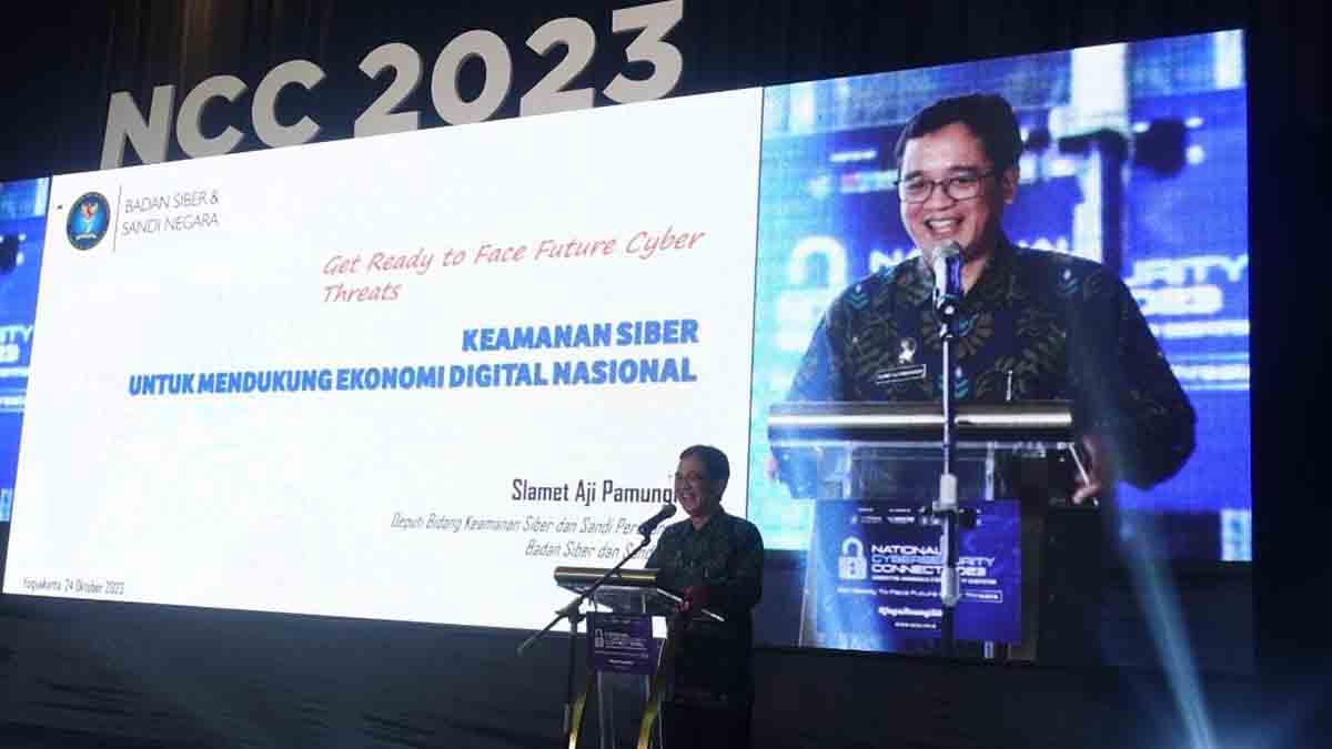 Kepala Badan Siber dan Sandi Negara (BSSN) Letjen. TNI (Purn) Hinsa Siburian yang diwakili Slamet Aji Pamungkas selaku Deputi Bidang Keamanan Siber dan Sandi Perekonomian BSSN mengatakan, Event ini membantu sekali BSSN dalam percepatan program-program BSSN, salah satunya Jaga Ruang Siber. “Harapannya peserta NCC 2023 dapat membantu BSSN dalam menjaga ruang siber, yang dimulai dari diri sendiri. Di pagi hari ini saja ada sejumlah 3 juta anomali traffic yang memungkinkan serangan siber terjadi. Dan ternyata 3% dari 3 juta anomali traffic tersebut berubah menjadi serangan siber. BSSN akan selalu siap menerima laporan terkait kejahatan siber selama 24/7,” bebernya.