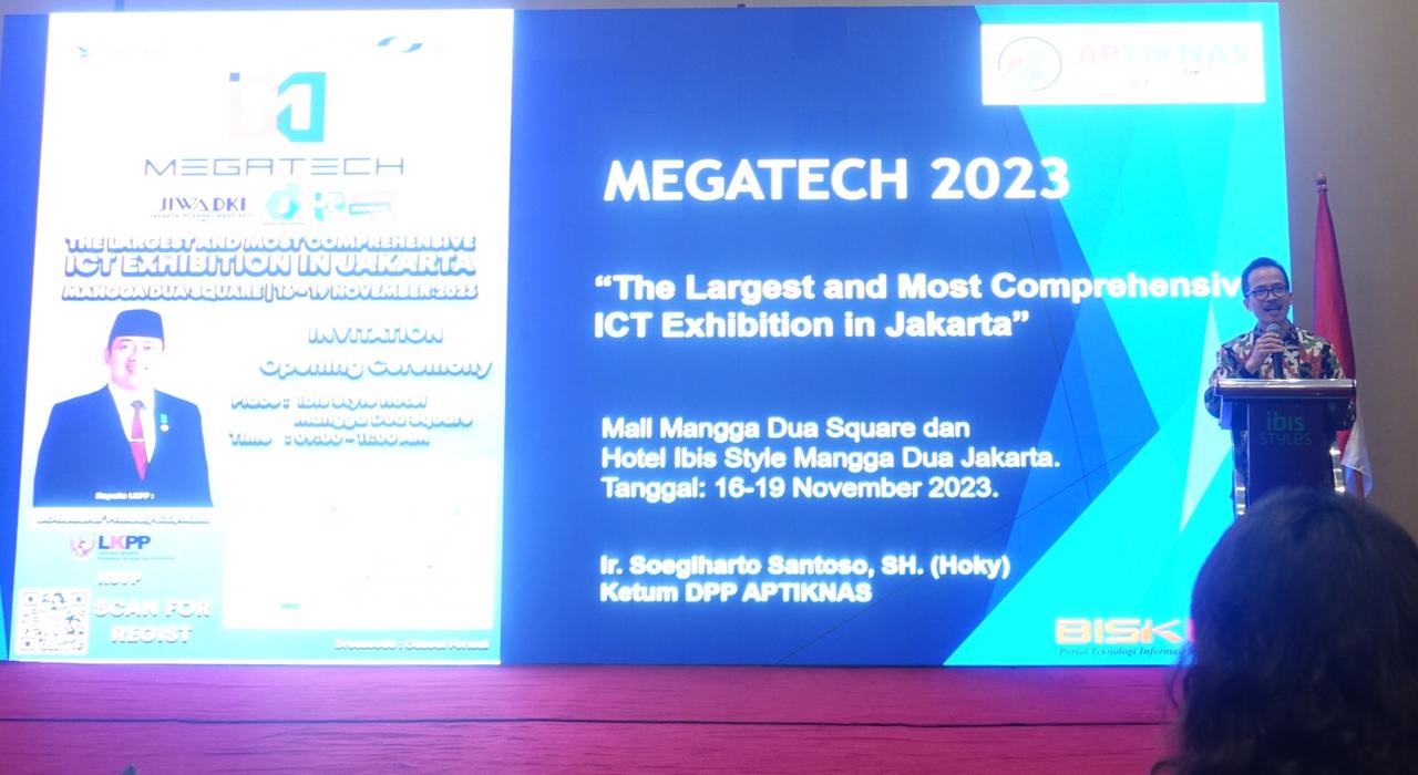 Jakarta, doreng45.com – Pameran MEGATECH 2023 yang diprakarsai oleh 3 organisasi besar yakni DPD APTIKNAS DKI Jakarta, APJII Wilayah DKI Jakarta dan AKEN (Asosiasi Katalog Elektronik Nasional) resmi dibuka selama 4 hari dari 16-19 November 2023 di Mall Mangga Dua Square, Jakarta.