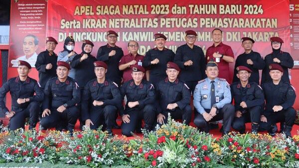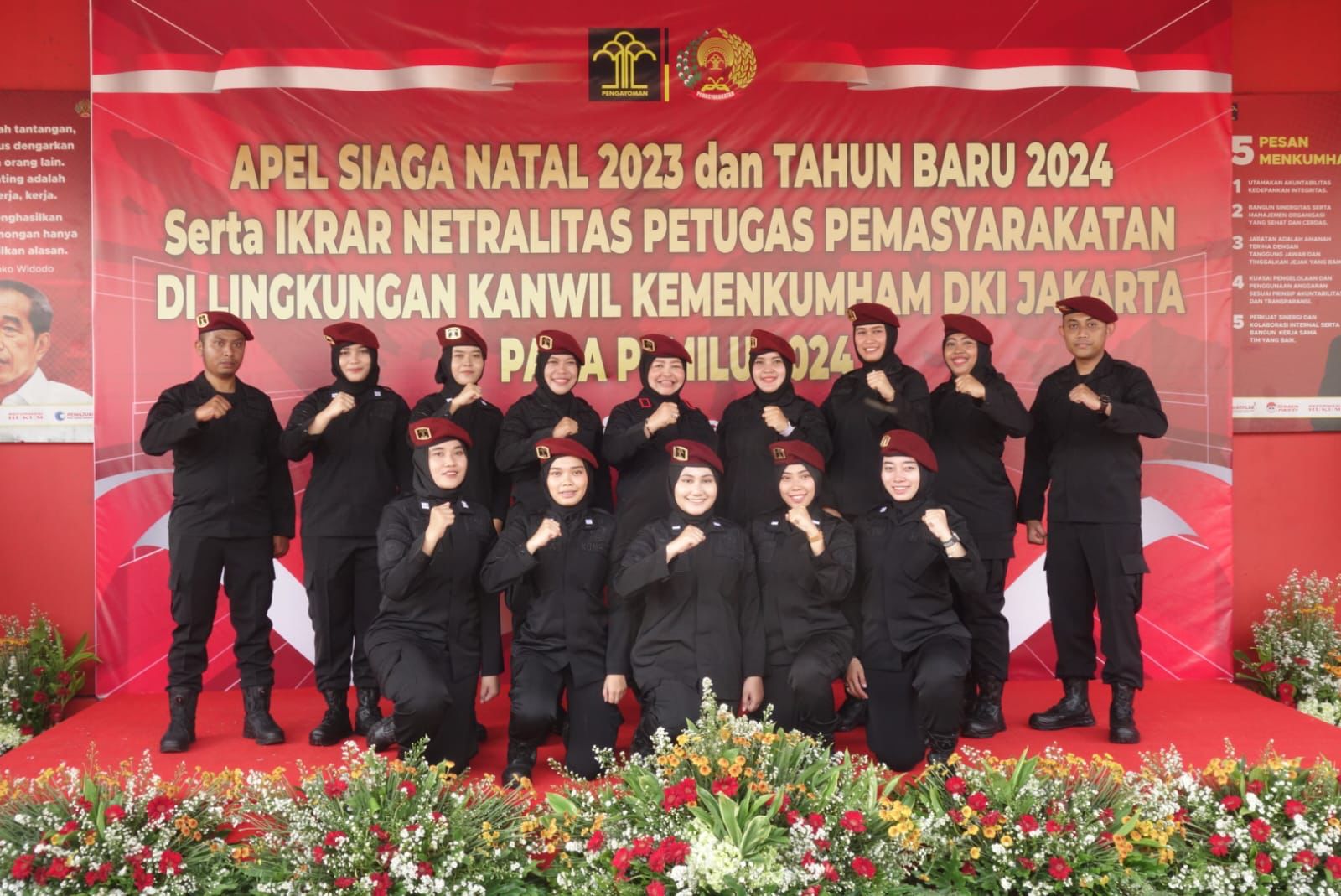 Apel siaga yang terpusat di Rumah Tahanan Negara (Rutan) Kelas I Cipinang ini, seluruh Petugas Pemasyarakatan di wilayah DKI Jakarta juga membacakan Ikrar Netralitas ASN dalam Pemilu Tahun 2024 yang dipimpin oleh Kepala Devisi Pemasyarakatan, Tonny Nainggolan.