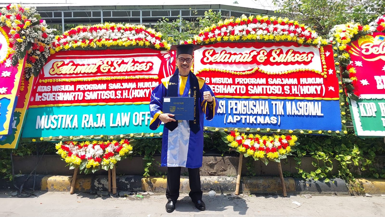 Inilah alasannya Ketua Umum Asosiasi Pengusaha TIK Nasional (APTIKNAS) dan juga Wakil Ketua Umum Serikat Pers Republik Indonesia (SPRI) Ir. Soegiharto Santoso akhirnya memilih menimba ilmu hukum di usia matang dan kemudian lulus dengan predikat Cum Laude di Sekolah Tinggi Ilmu Hukum IBLAM Jakarta, yang di Wisuda pada hari Sabtu, 16 Desember 2023 di Balai Sarbini, Jakarta.