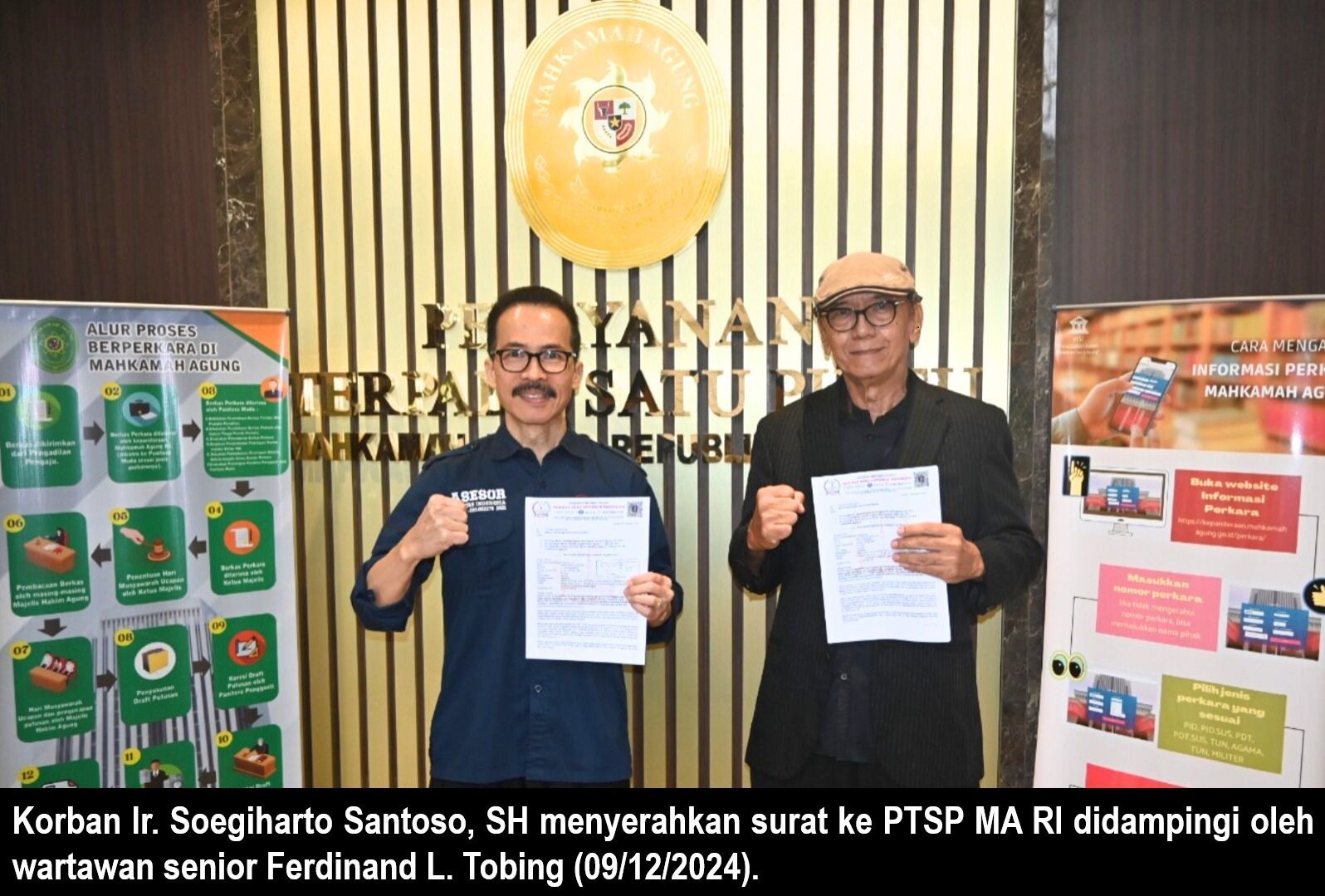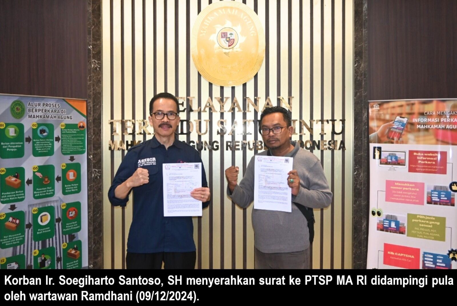 Jakarta, doreng45.com – Ir. Soegiharto Santoso, SH, Ketua Umum Asosiasi Pengusaha Komputer Indonesia (APKOMINDO), terus memperjuangkan keadilan yang telah ia cari selama delapan tahun. Perjalanan panjang ini bermula dari kriminalisasi yang dialaminya pada tahun 2016, ketika ia ditahan selama 43 hari di Rutan Bantul, Yogyakarta. Kini, ia kembali bersurat kepada Ketua Mahkamah Agung RI, Prof. Dr. H. Sunarto, SH., MH., untuk meminta penegakan hukum atas kasus yang dinilai mencederai keadilan.