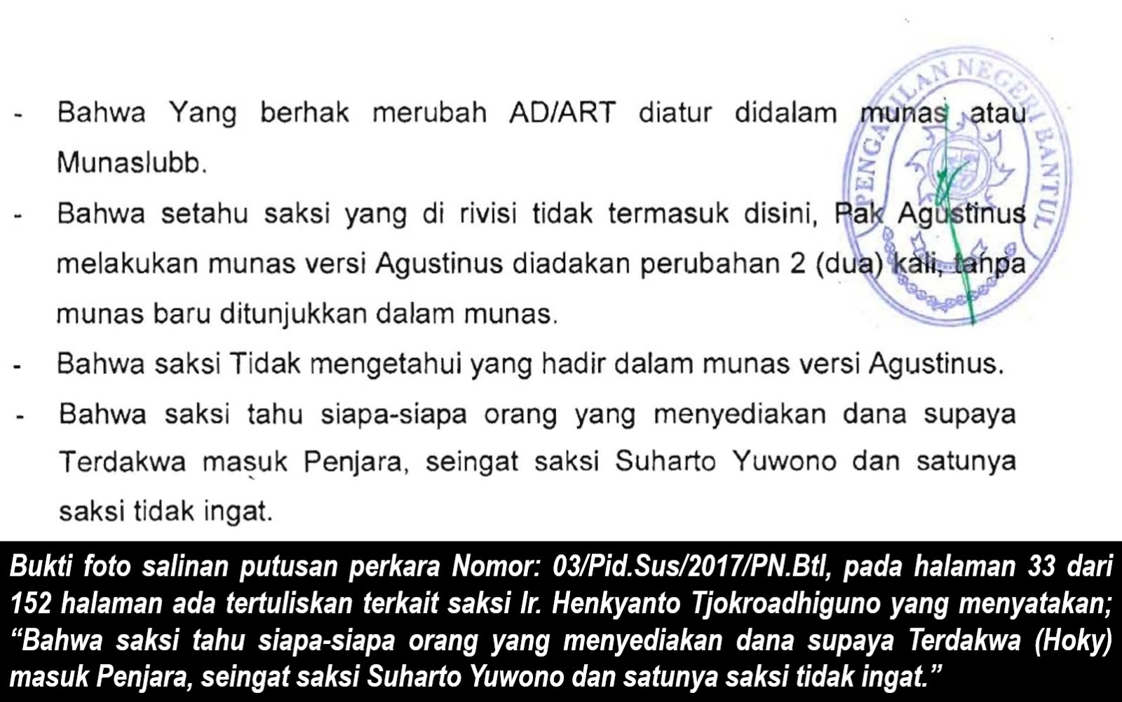 Fakta persidangan bahkan mengungkap adanya dana yang disiapkan untuk memenjarakan Hoky. Nama Suharto Yuwono disebut oleh saksi Ir. Henkyanto Tjokroadhiguno sebagai salah satu pihak penyedia dana tersebut.