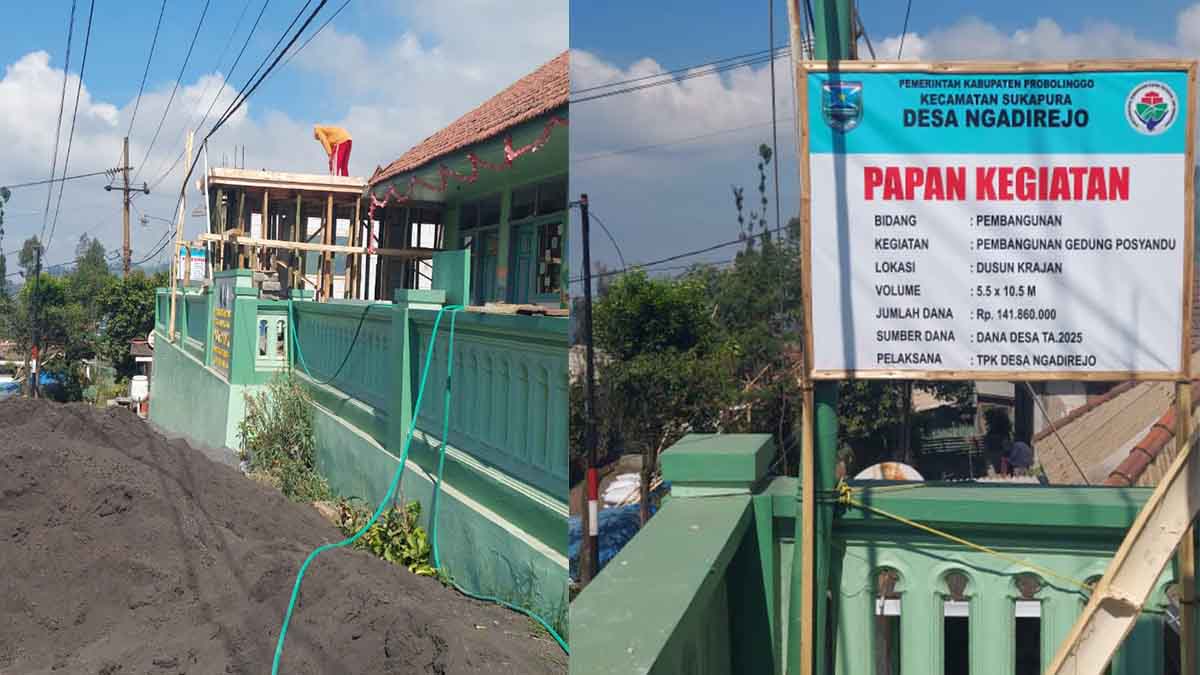 Probolinggo, doreng45.com – Pemerintah Desa Ngadirejo, Kecamatan Sukapura, melaksanakan pembangunan gedung posyandu yang didanai dari Dana Desa Tahun Anggaran 2025. Pembangunan tersebut berlokasi di Dusun Krajan, tepat di sebelah Kantor Desa Ngadirejo.