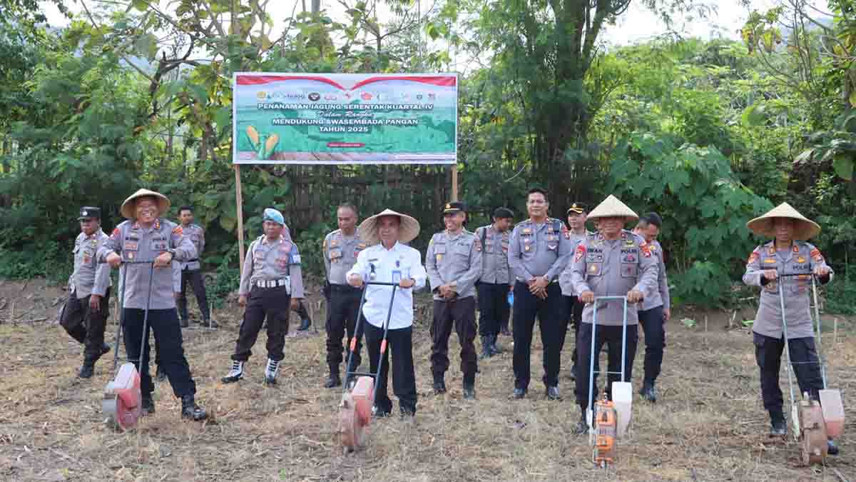 Pada Rabu (8/10/2025) pukul 08.00 Wita, Kapolres Bima AKBP Eko Sutomo, S.I.K., M.I.K., bersama jajaran mengikuti kegiatan penanaman jagung serentak Kuartal IV melalui sambungan daring. Acara nasional ini dipusatkan di Desa Bantar Panjang, Kecamatan Tigaraksa, Kabupaten Tangerang, Provinsi Banten, yang dihadiri oleh Wakil Presiden RI Gibran Rakabuming Raka dan dipimpin langsung oleh Kapolri Jenderal Polisi Listyo Sigit Prabowo, M.Si.