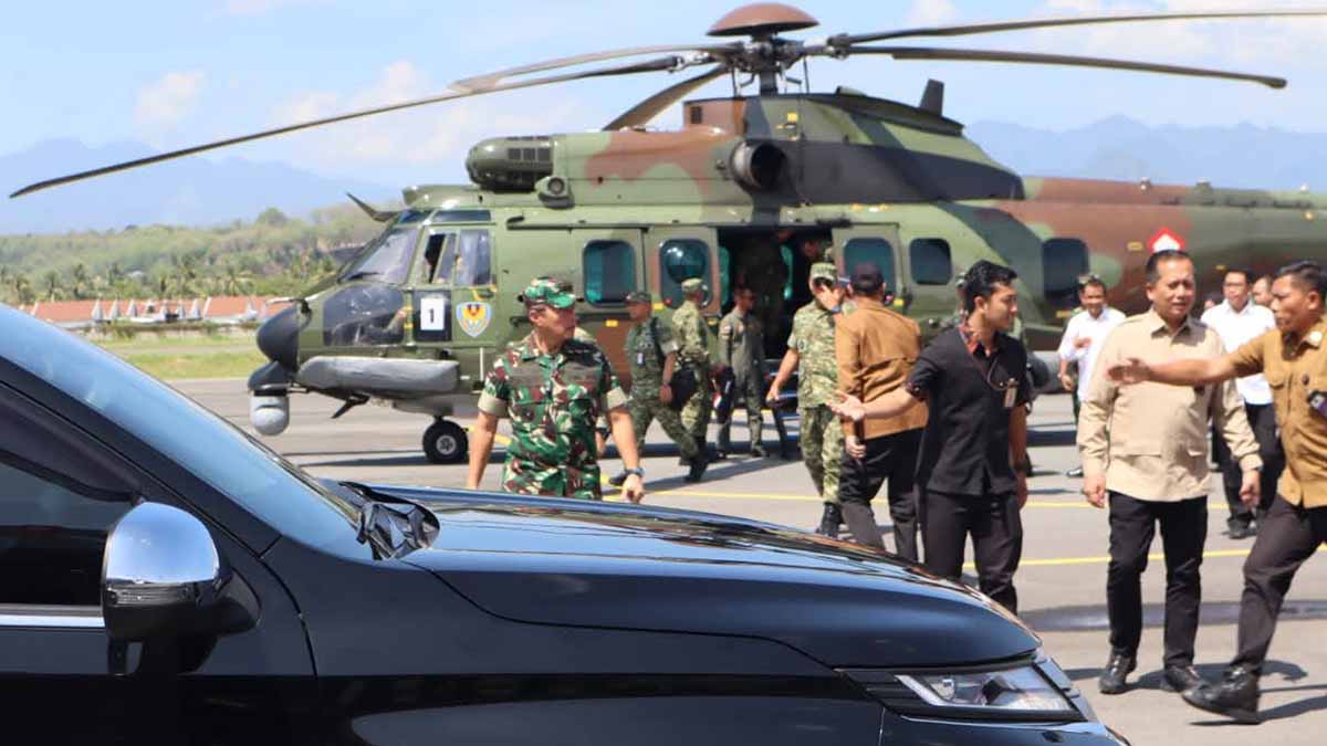NTB, Doreng45.com – Komandan Kodim 1607/Sumbawa, Letkol Kav Basofi Cahyowibowo, S.T., bersama jajaran Forum Koordinasi Pimpinan Daerah (Forkopimda) Kabupaten Sumbawa, menyambut kedatangan Panglima TNI dan rombongan Menteri Kabinet Indonesia Maju di Bandara Sultan Muhammad Kaharuddin, Sabtu (18/10/2025).