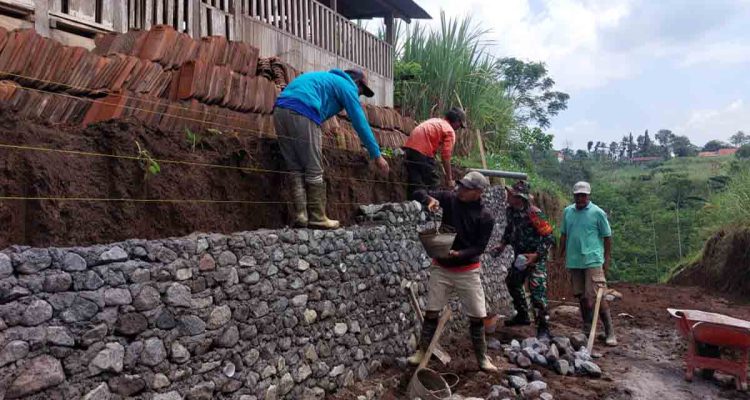 Babinsa Kedawung Bantu Warga Bangun Talud Penahan Tanah di Lumajang
